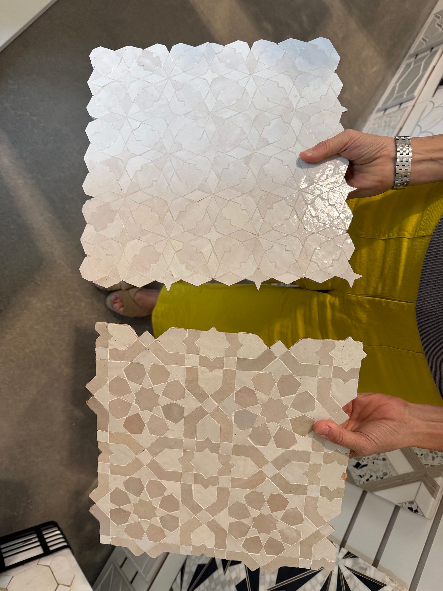 ChatGPT added Dead Salmon to the walls (obviously we are going to physically sample this on the walls) and I added this tile to the fireplace in Canva. Anyways, I’m into these vibes! I’ll keep you posted on what we decide once I grab samples.