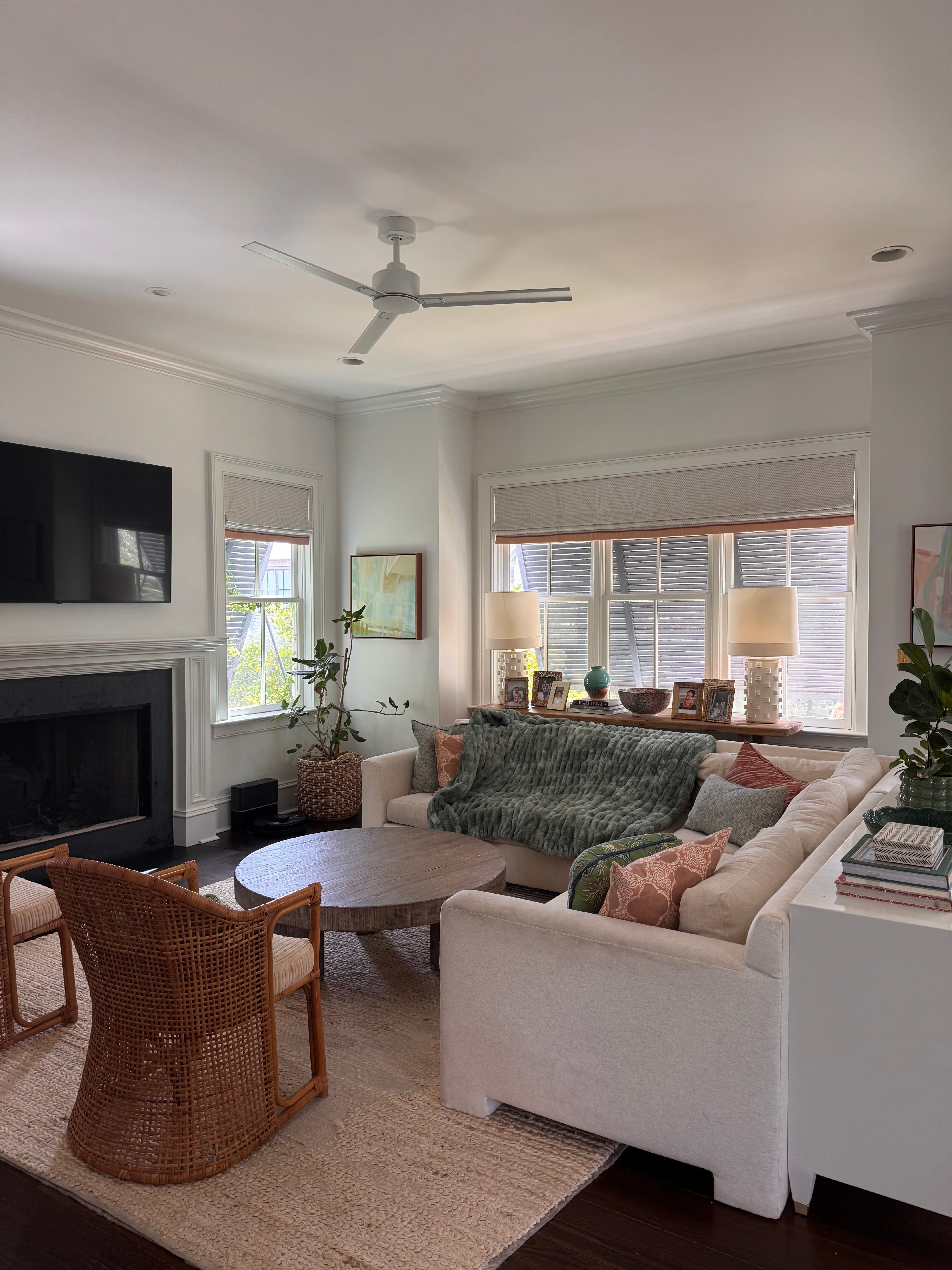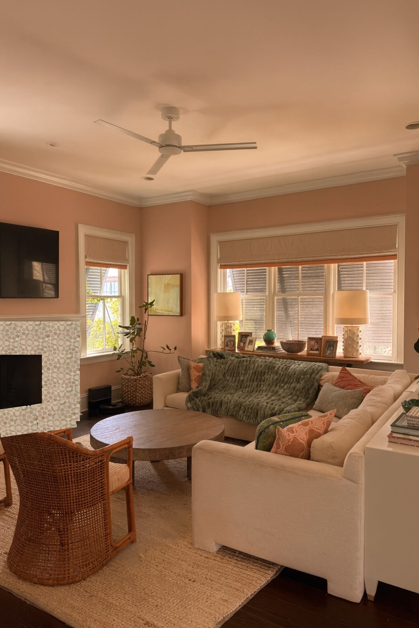 With fall comes an urge to take on some house projects! When we bought our house we painted every wall and kitchen cabinet and stained the floors. We wallpapered a few rooms, have done some big renovations (added a full bedroom/bath and re-did our primary bedroom and bath) and I’m getting an itch to make some decor changes. There are two rooms that could use a little love - our primary bedroom which still has most of our furniture from Chicago and our family room. I am dying to paint our family room and tile our fireplace. I have to get Dave on board but I asked ChatGPT to update the room for me. Here is what it looks like now: