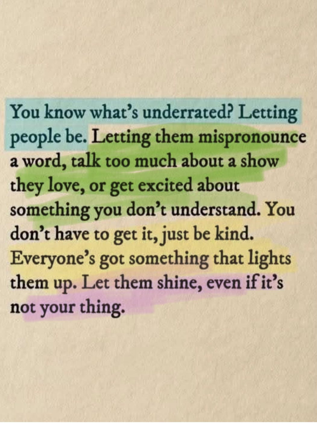 I have found myself feeling protective of my personal space lately. With so much noise and animosity circulating around everything online, I tend to retreat when things feel loud. I saved this little note I saw yesterday here on Substack and wanted to share (if you know who to give credit to please let me know!). A gentle reminder that if you don’t have anything nice to say, don’t say anything at all. It feels simple, you know? There is so much judgement in our world. Others choices don’t need to reflect our own. We don’t need to always understand everything about everyone. I personally feel so much more at peace being happy for others. Choosing to be happy for others!