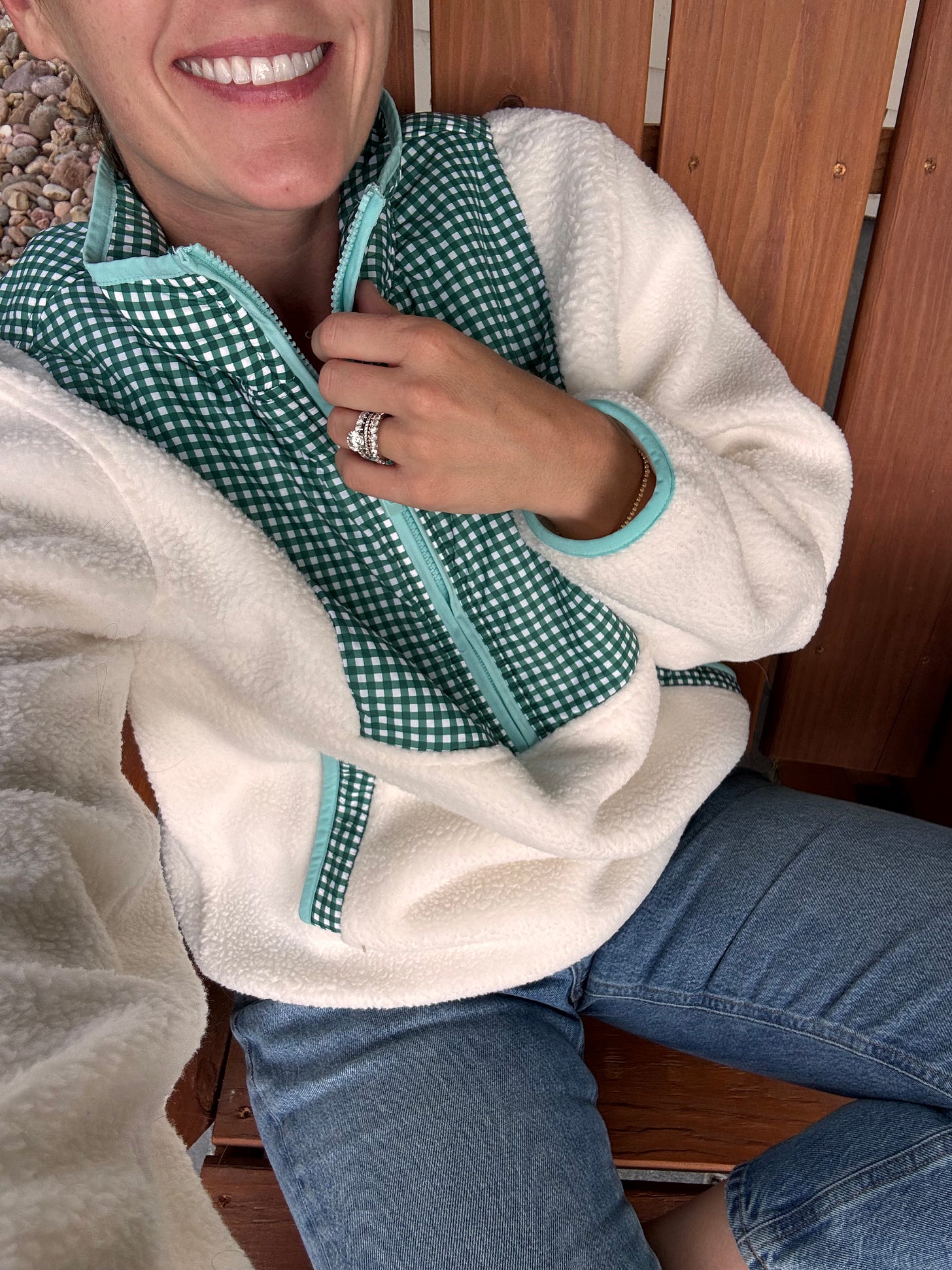 how cute is this Addison Bay gingham pullover? I’m wearing a small.
